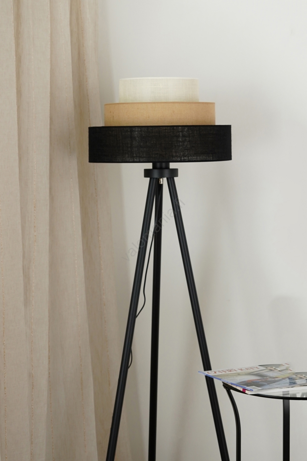 Brilagi - Lattiavalaisin ASPEN LUNETA 1xE27/15W/230V musta/beige/kerma