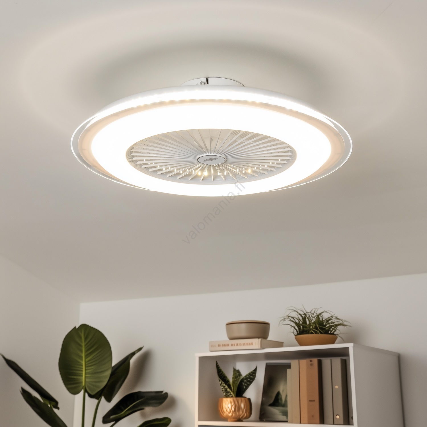 • Moderni LED-kattovalaisin tehokkaalla tuulettimella.