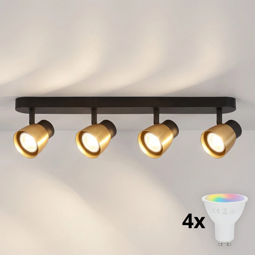 Brilagi - LED RGBW himmennettävä kohdevalaisin NUGGET 4xGU10/4,8W/230V musta/kultainen | Valomania