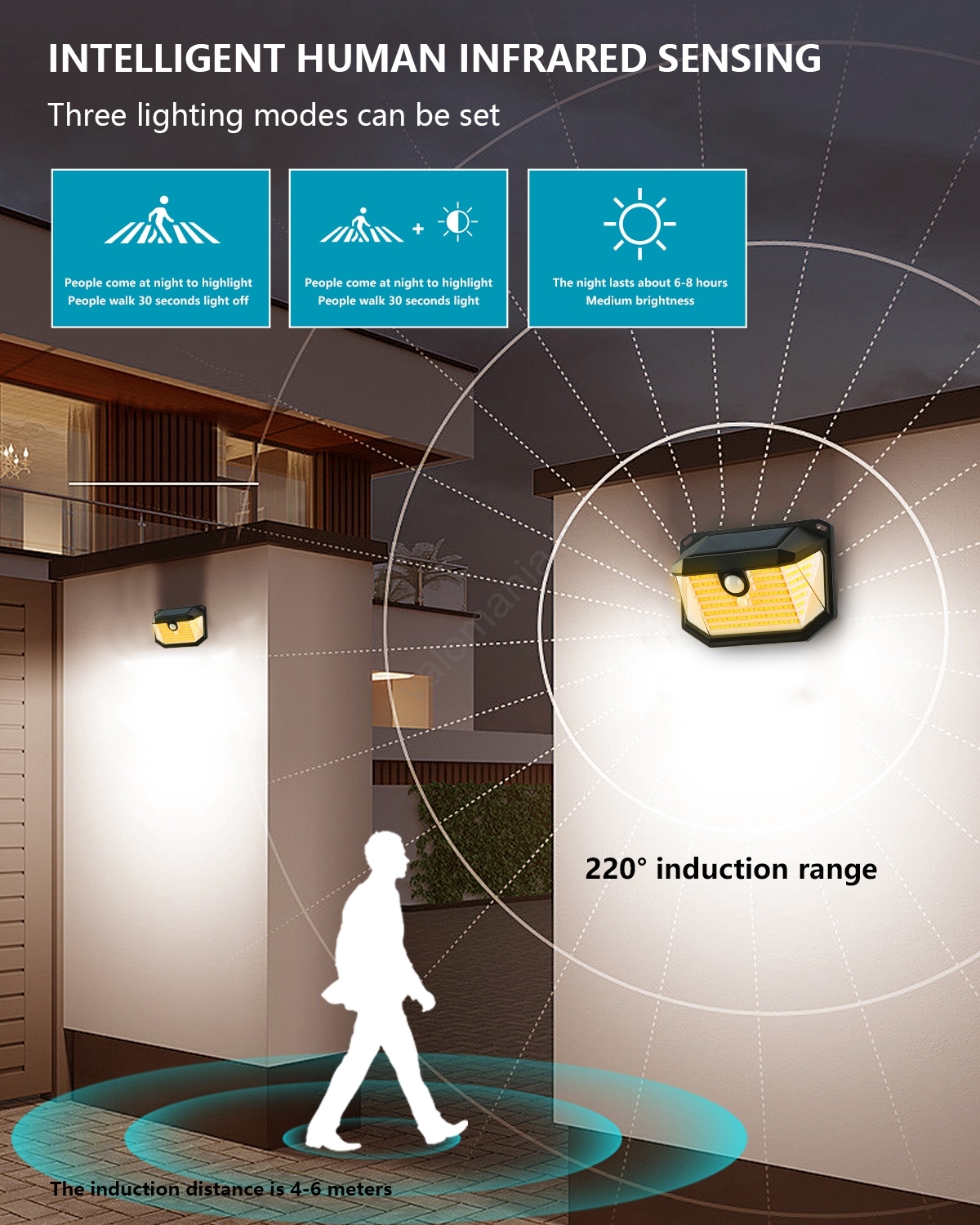 • Tila 3 - liiketunnistus, maksimivalo päällä 20-25 sekuntia; ilman liikettä valo sammuu.