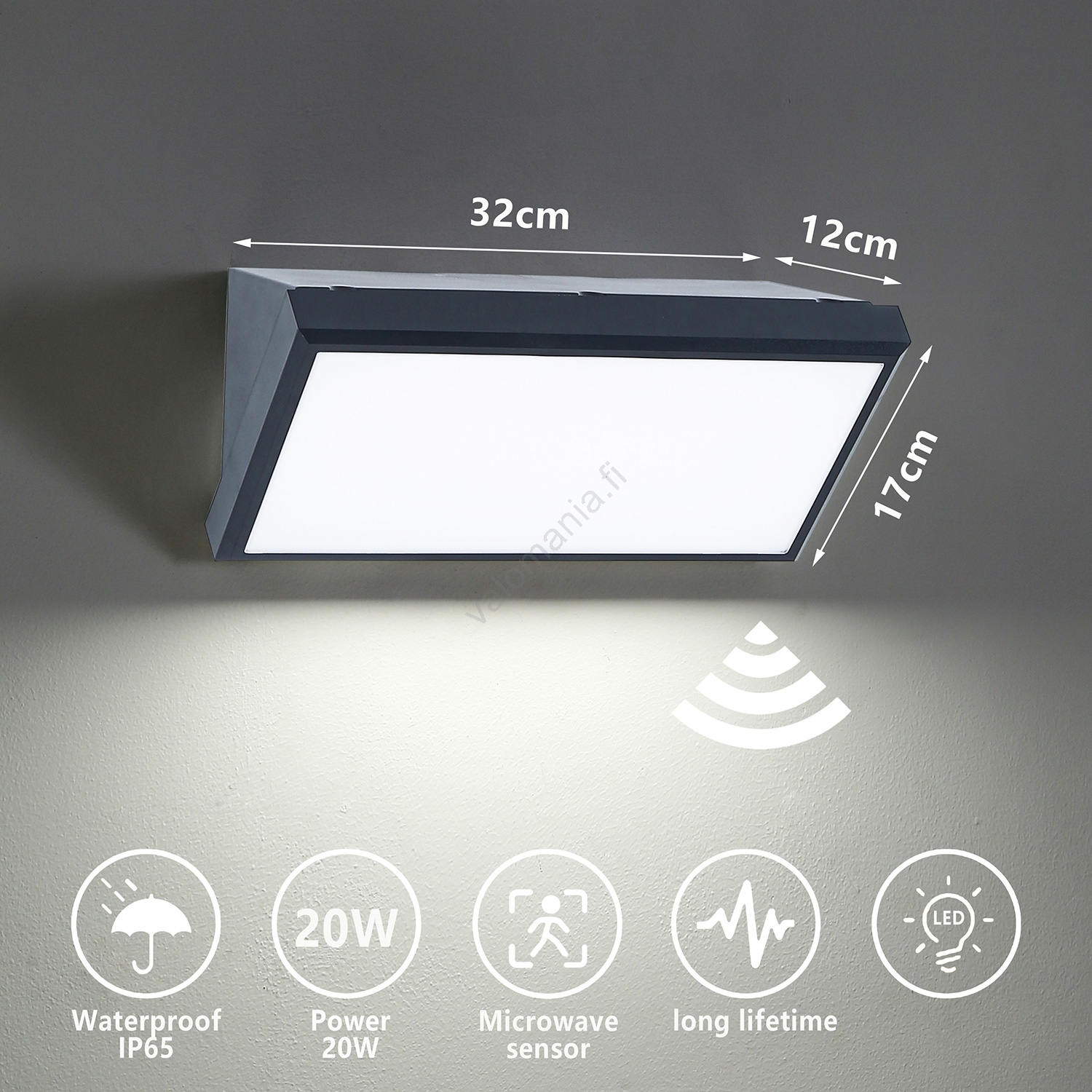 Brilagi - LED ulkoseinävalaisin TRIANGLE LED/20W/230V antrasiitti, sensori | Valomania