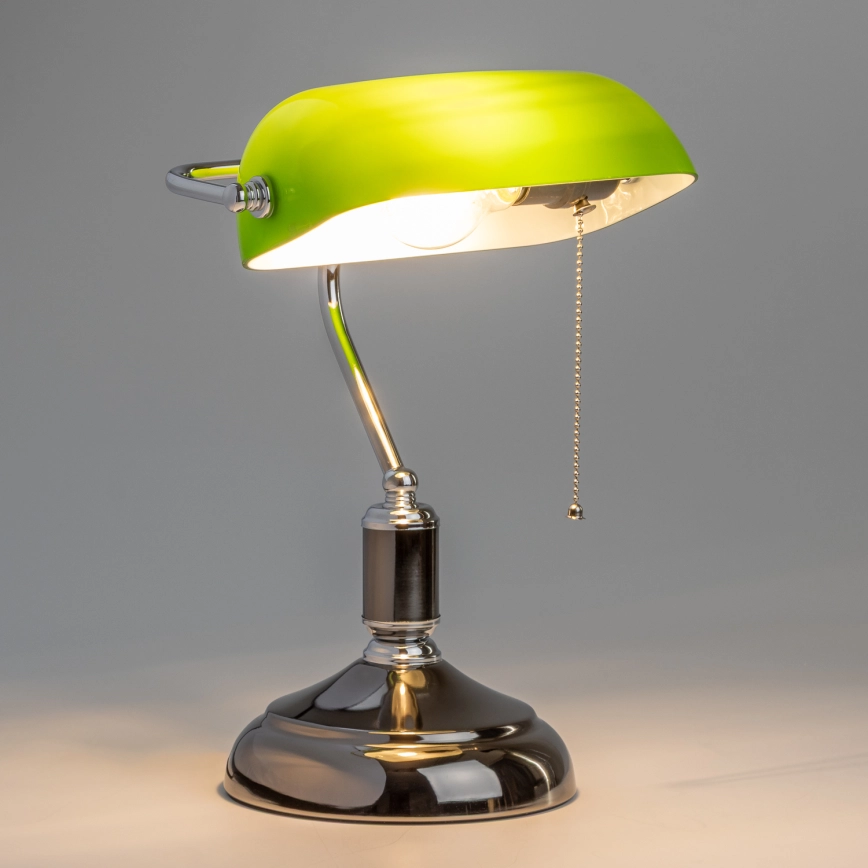 • Brilagi - Pöytävalaisin BANK OFFICE 1xE27/60W/230V kiiltävä kromi/vihreä