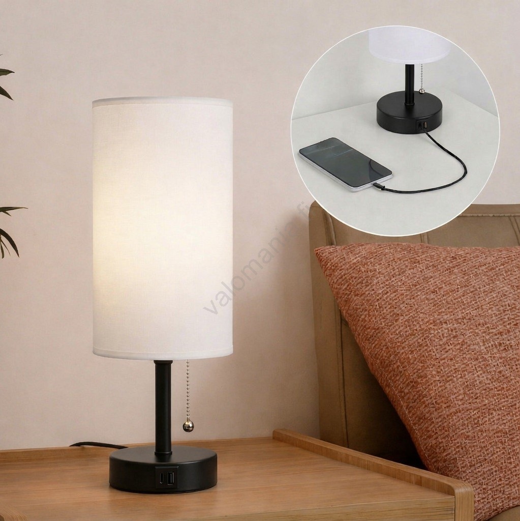 Brilagi - Pöytälamppu USB-portilla TABLON 1xE27/25W/230V musta/valkoinen | Valomania