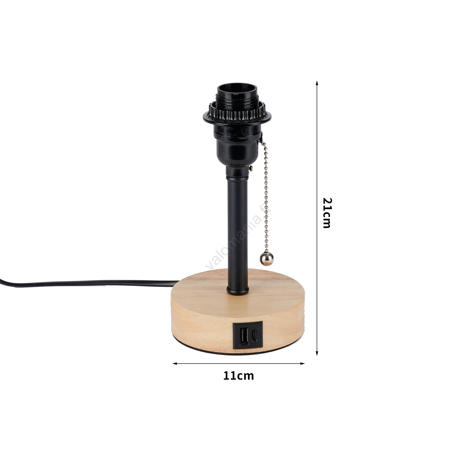 Brilagi - Pöytälamppu USB-portilla TABLON 1xE27/25W/230V tammi/musta | Valomania