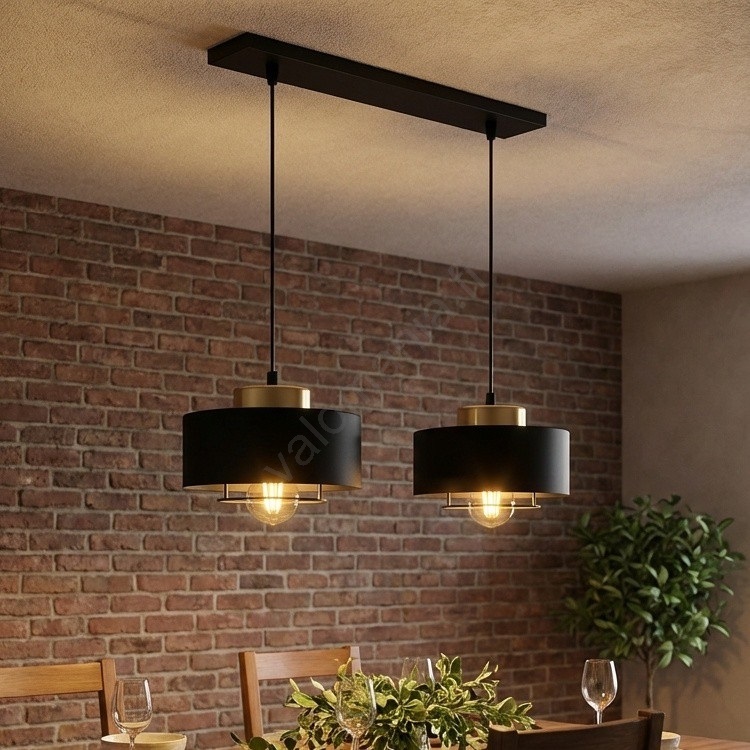 Brilagi - riippuvalaisin johdolla 2xE27/60W/230V musta/kultainen | Valomania