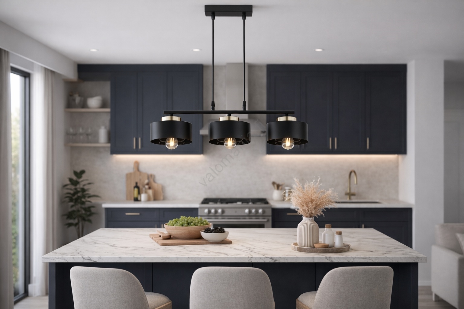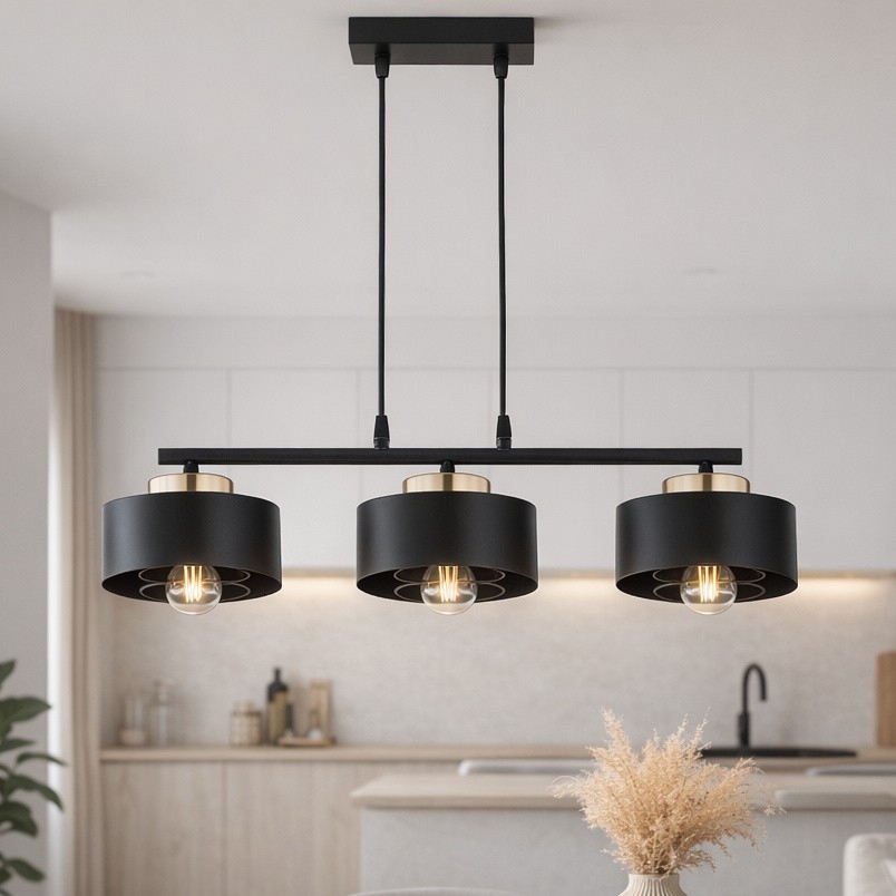 Brilagi - Riippuvalaisin vaijerilla 3xE27/60W/230V musta/kulta | Valomania