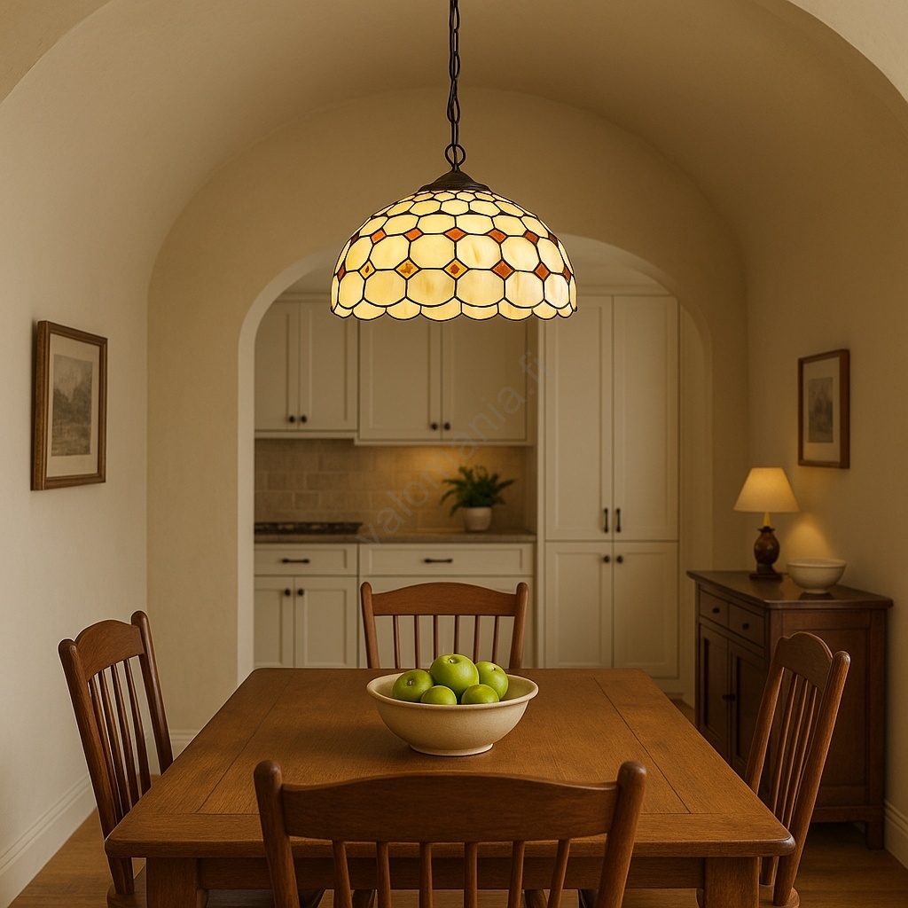 Brilagi - Tiffany-tyylinen lasikupuinen kattokruunu ketjulla DORAN 2xE27/60W/230V | Valomania