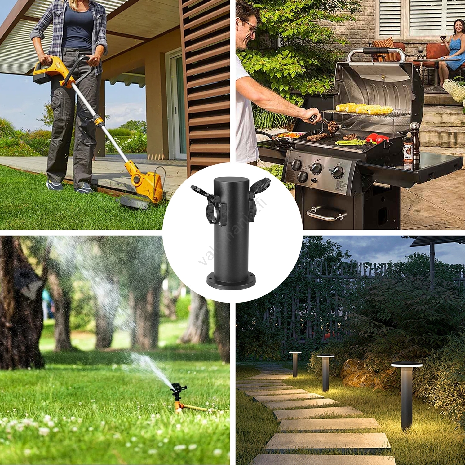 • Ulkopistorasiatolppa on käytännöllinen ratkaisu puutarhaasi tai ulkotilaan, joka mahdollistaa virransyötön ulkona.