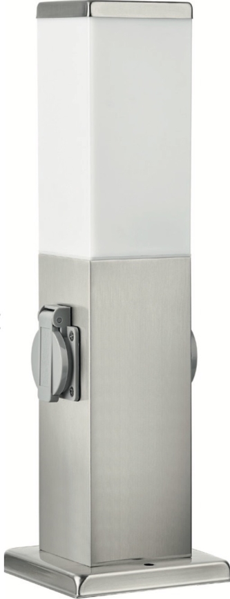 • Brilagi - Ulkovalaisin, jossa on kaksi SCHUKO-pistorasiaa, 1xE27/15W/230V, 40 cm, IP44, mattakromi