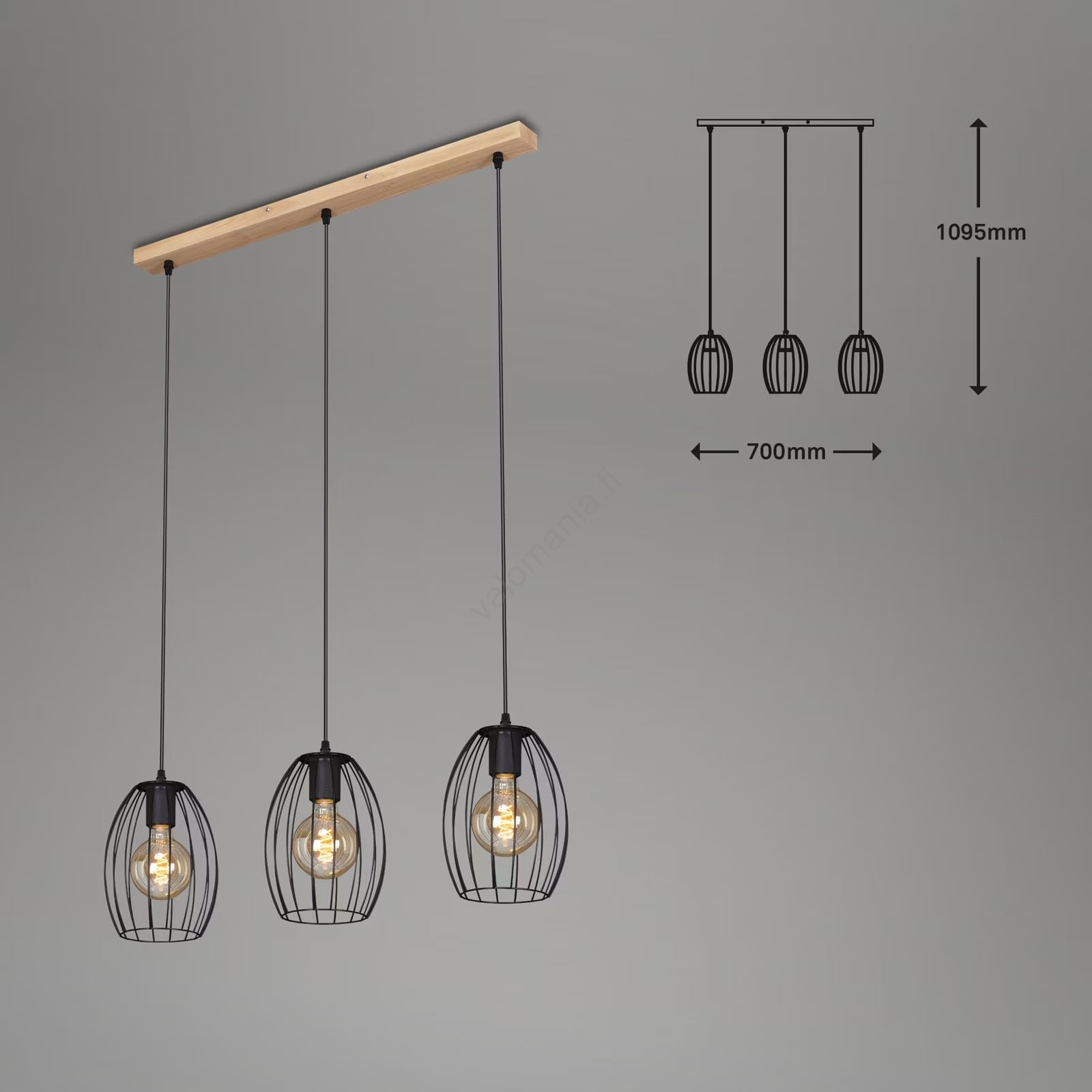 Brilo - Kattokruunu johdossa WAKTU 3xE27/60W/230V kumipuu | Valomania