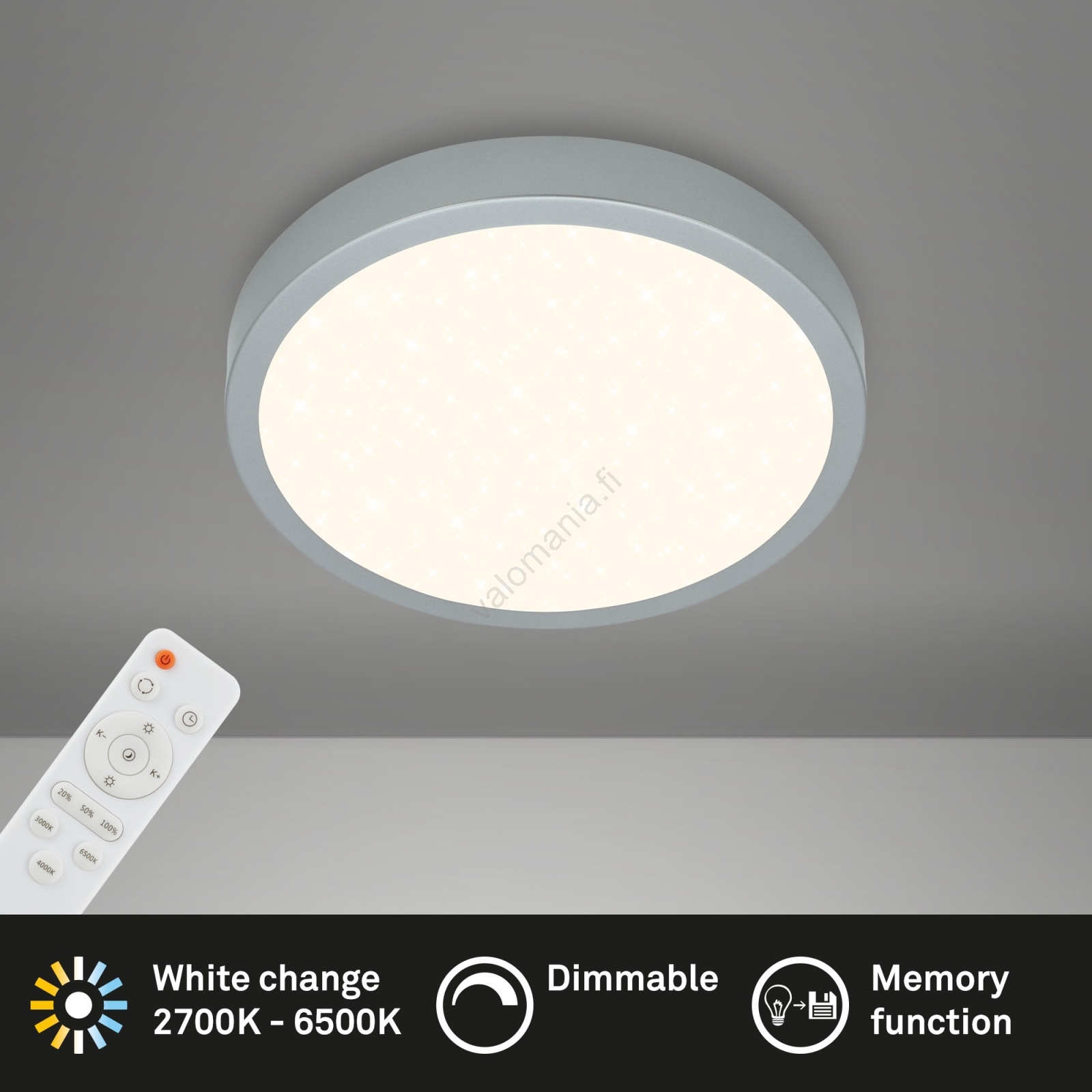 • Briloner 3701-014 - Himmennettävä LED-kattovalaisin RUNA LED/18W/230V 2700-6500K hopea + kauko-ohjaus