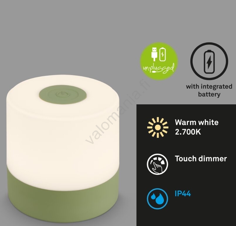 • Briloner 7461019 - LED himmennettävä ladattava ulkokäyttöön tarkoitettu pöytävalaisin LED/2W/5V IP44 1200 mAh vihreä