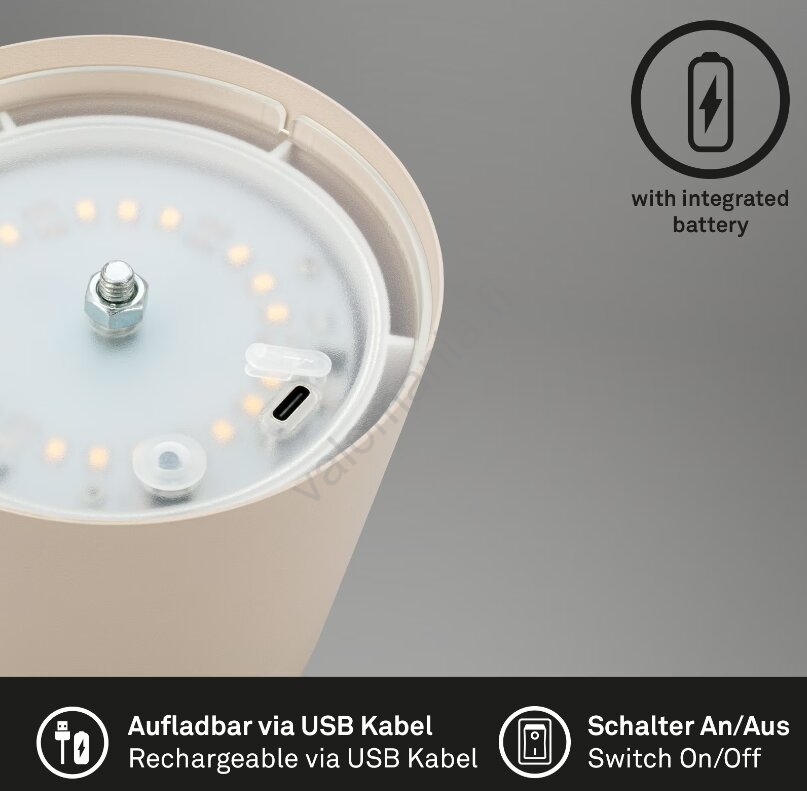 Briloner 7508011 - himmennettävä ladattava LED-pöytävalaisin 2,5 W/5 V IP44 beige | Valomania