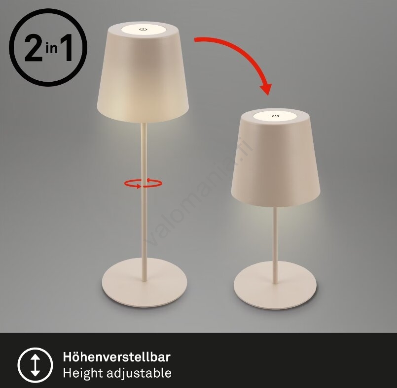 • Briloner 7508011 - himmennettävä, ladattava ulkokäyttöön tarkoitettu LED-pöytälamppu 2v1 LED/2,5W/5V IP44 1200 mAh beige