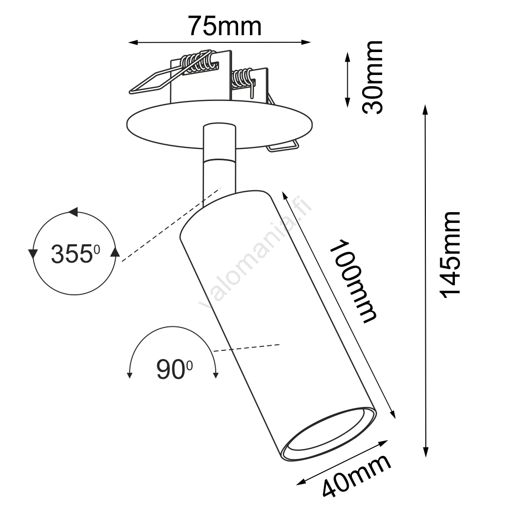 • Brosline - upotettava kohdevalaisin 1xGU10/4W/230V musta
