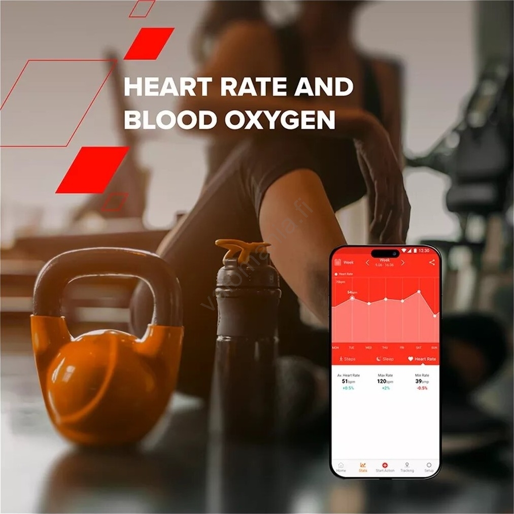 • Se seuraa sykettä, verenpainetta, unta, laskee askeleet ja muistuttaa nesteytyksestä.