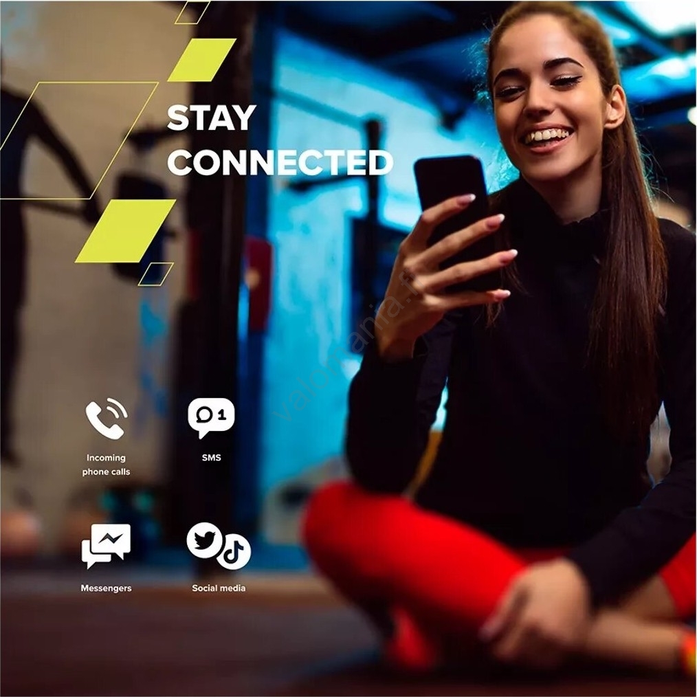 • Kello ilmoittaa saapuvista viesteistä, puheluista ja muista sosiaalisen median ilmoituksista.