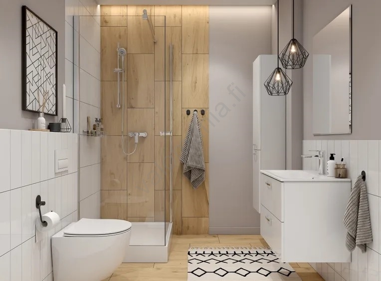 • Kaappi sopii erinomaisesti moderniin kylpyhuoneeseen, tarjoten selkeän ilmeen ja käytännöllistä säilytystilaa.
