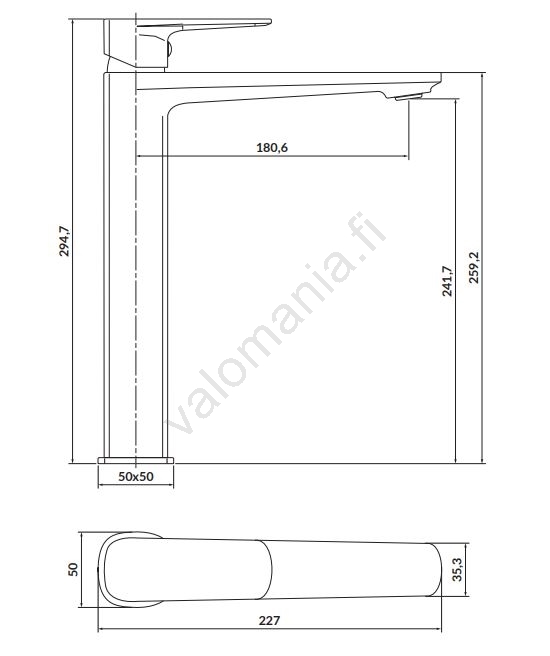 • Ohjausosa: 35 mm keraaminen patruuna.