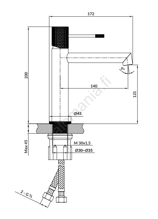 • 60 cm pitkät liitosletkut sisältyvät pakkaukseen.