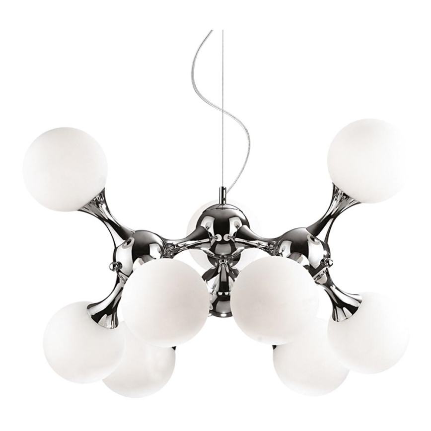 Ideal Lux - Kattokruunu johdossa NODI 9xE14/40W/230V kiiltävä kromi/valkoinen merkitsee kaunista ja toimivaa muotoilua.  Valoon sopii polttimo, jossa on E14-kanta. Täältä voit ostaa myös muita lamppuja edulliseen hintaan. Mielenkiintoinen lisä kotiisi.