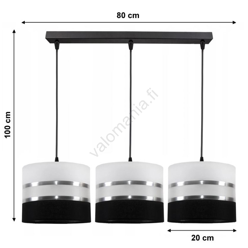 • Kattokruunu narulla CORAL 3xE27/60W/230V mustavalkoinen