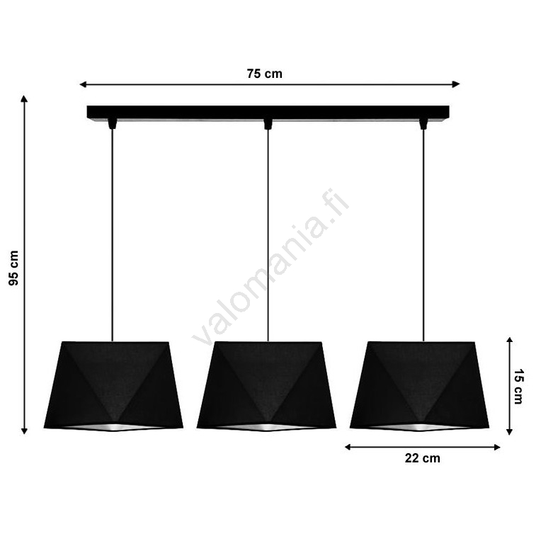 Kattokruunu narulla DIAMENT 3xE27/60W/230V musta | Valomania