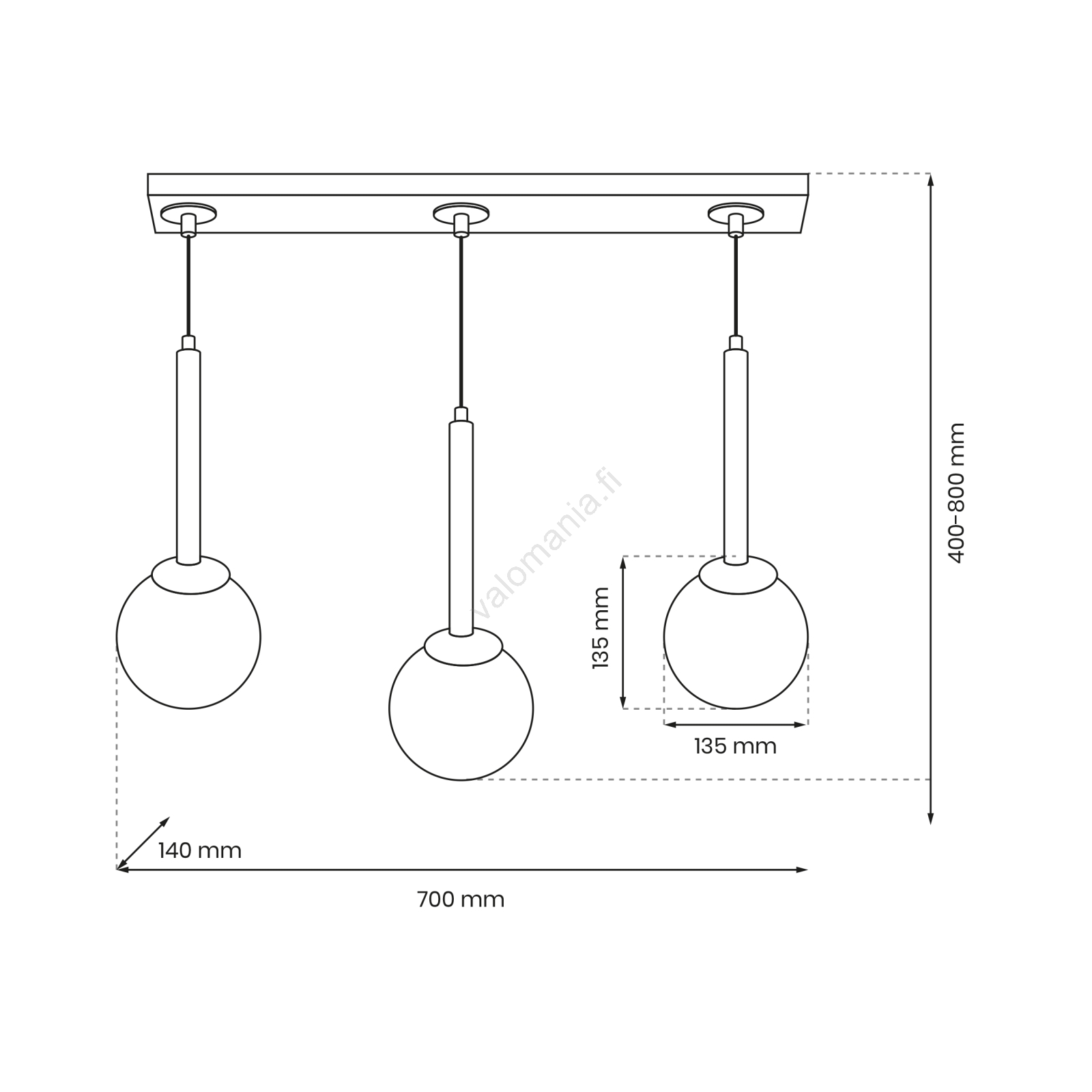 Kattokruunu narulla PARMA 3xE14/40W/230V musta | Valomania