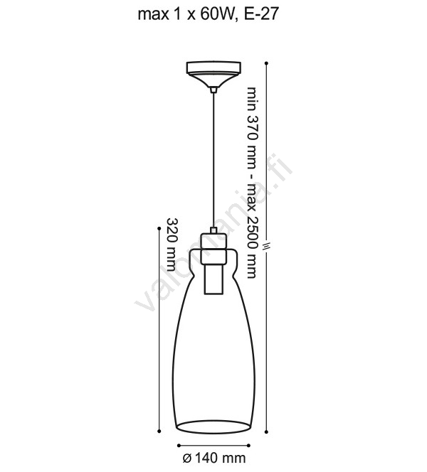 Kattokruunu johdossa VETRO 1xE27/60W/230V | Valomania