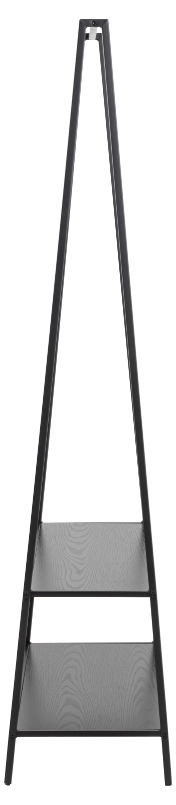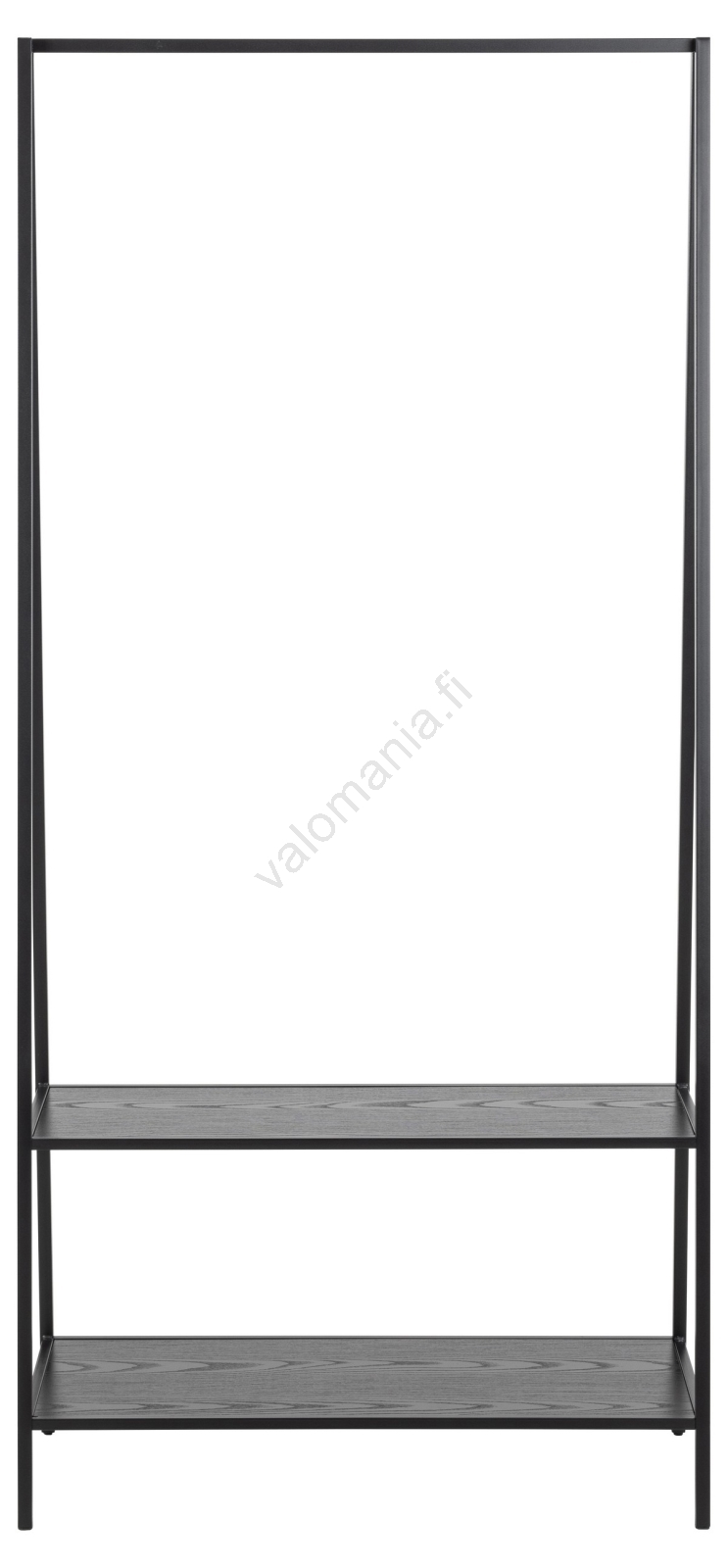 • Runko: mattamusta, karkeapintainen pulverimaalattu teräs; 2 hyllyä ja jalusta mustaa karkeapintaista melamiinia sekä vaatetanko.