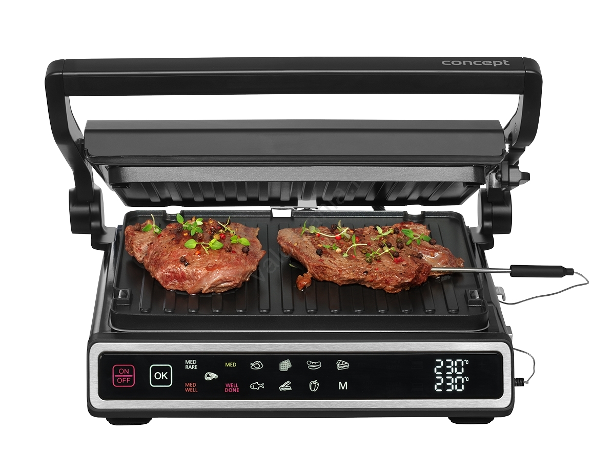 Concept ge3550 - Kontaktigrilli lämpötila-anturin kanssa 2000W/230V musta | Valomania