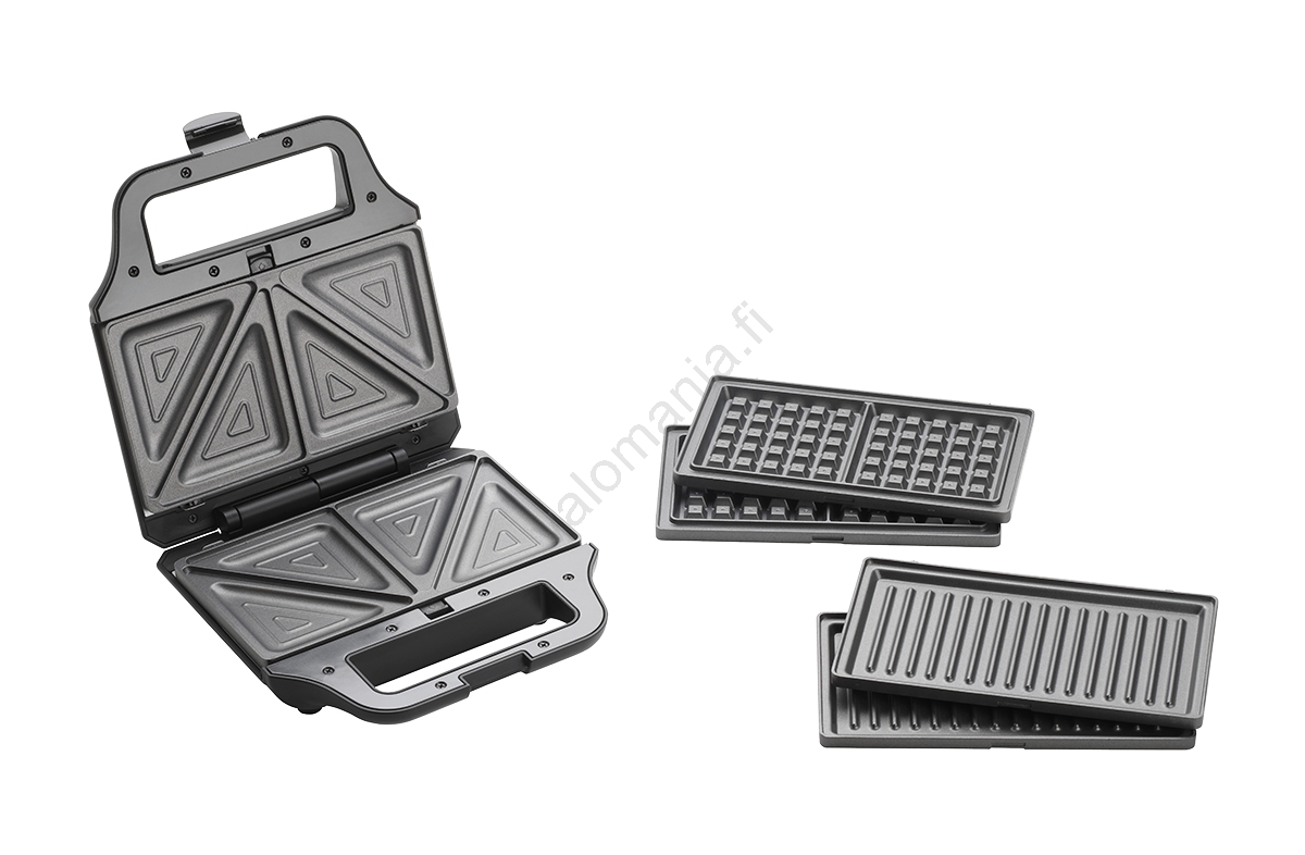• 3 sarjaa vaihdettavia levyjä – leivänpaahdin, vohvelirauta, grilli.