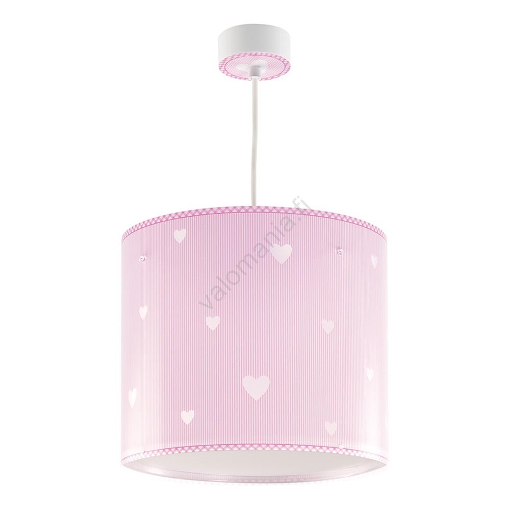 • Lapsille suunniteltu kattovalaisin pehmeässä vaaleanpunaisessa sävyssä, jossa sydämiä.