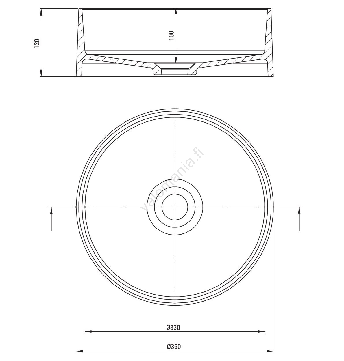 • Pesuallas on tarkoitettu pöytätason päälle asennettavaksi, mikä mahdollistaa joustavan sijoittelun ja yhdistämisen erilaisiin kylpyhuoneen tasoihin.