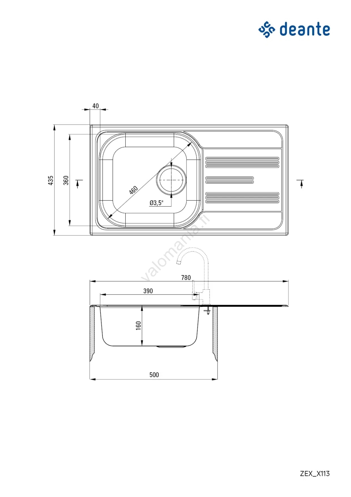 Deante ZEX_0113 - Keittiön pesuallas XYLO 43,5x78 cm satiini | Valomania