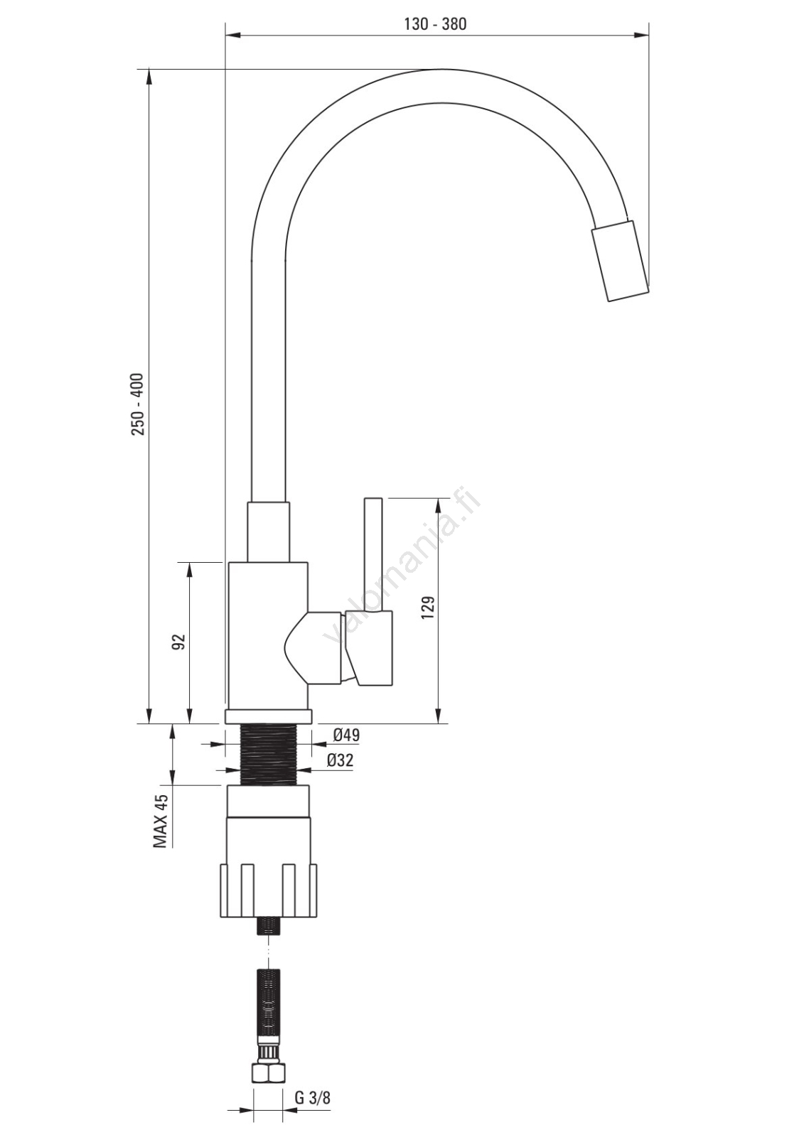 • 45 cm liitosletku hanalle sisältyy pakkaukseen.