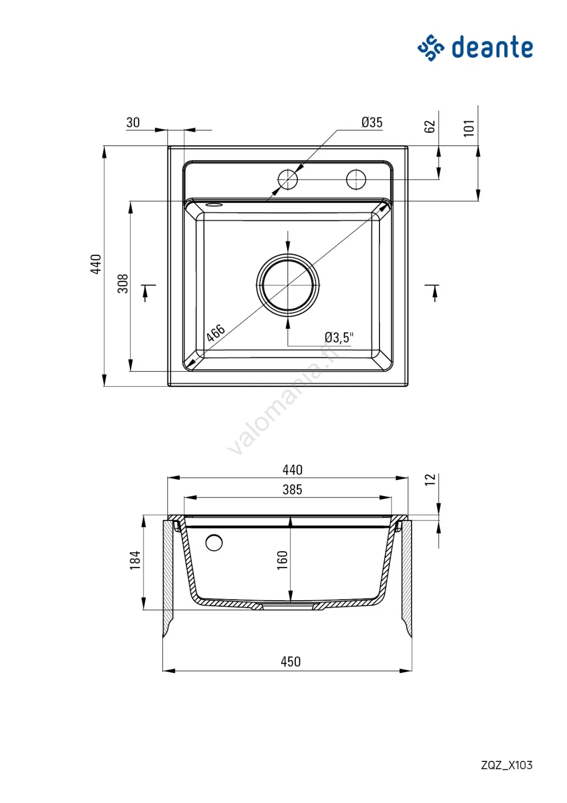 Deante ZQZ_T103 - Keittiöallas ZORBA 44x44 cm graniitti/antrasiitti | Valomania
