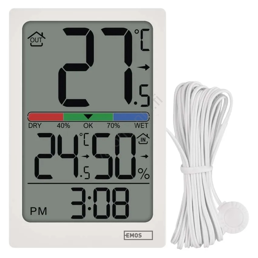 • Digitaalinen lämpö- ja kosteusmittari 2xAAA valkoinen