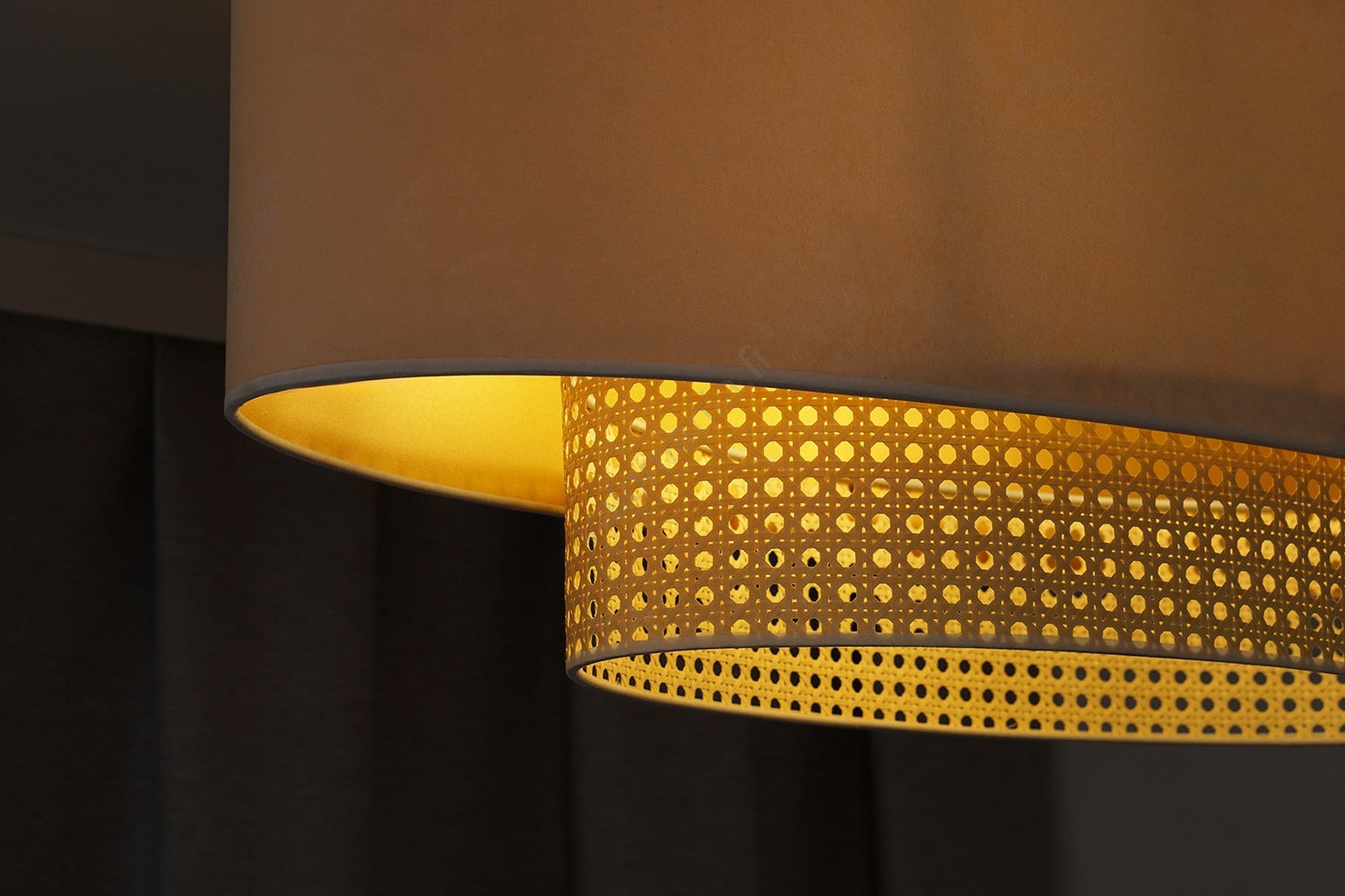 Duolla - Kattokruunu johdossa DOUBLE OVAL RATTAN 2xE27/15W/230V kerma/rottinki | Valomania