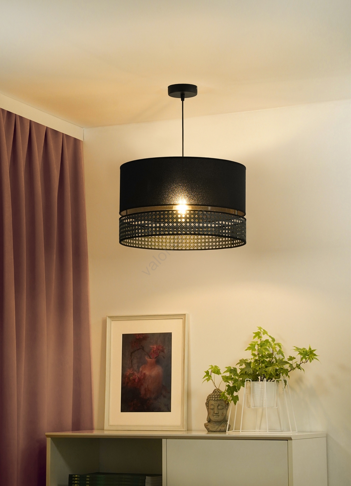 Duolla - Kattokruunu johdossa DOUBLE RATTAN 1xE27/15W/230V halkaisija 40 cm musta merkitsee kaunista ja toimivaa muotoilua.  Valoon sopii polttimo, jossa on E27-kanta. Täältä voit ostaa myös muita lamppuja edulliseen hintaan. Mielenkiintoinen lisä kotiisi.