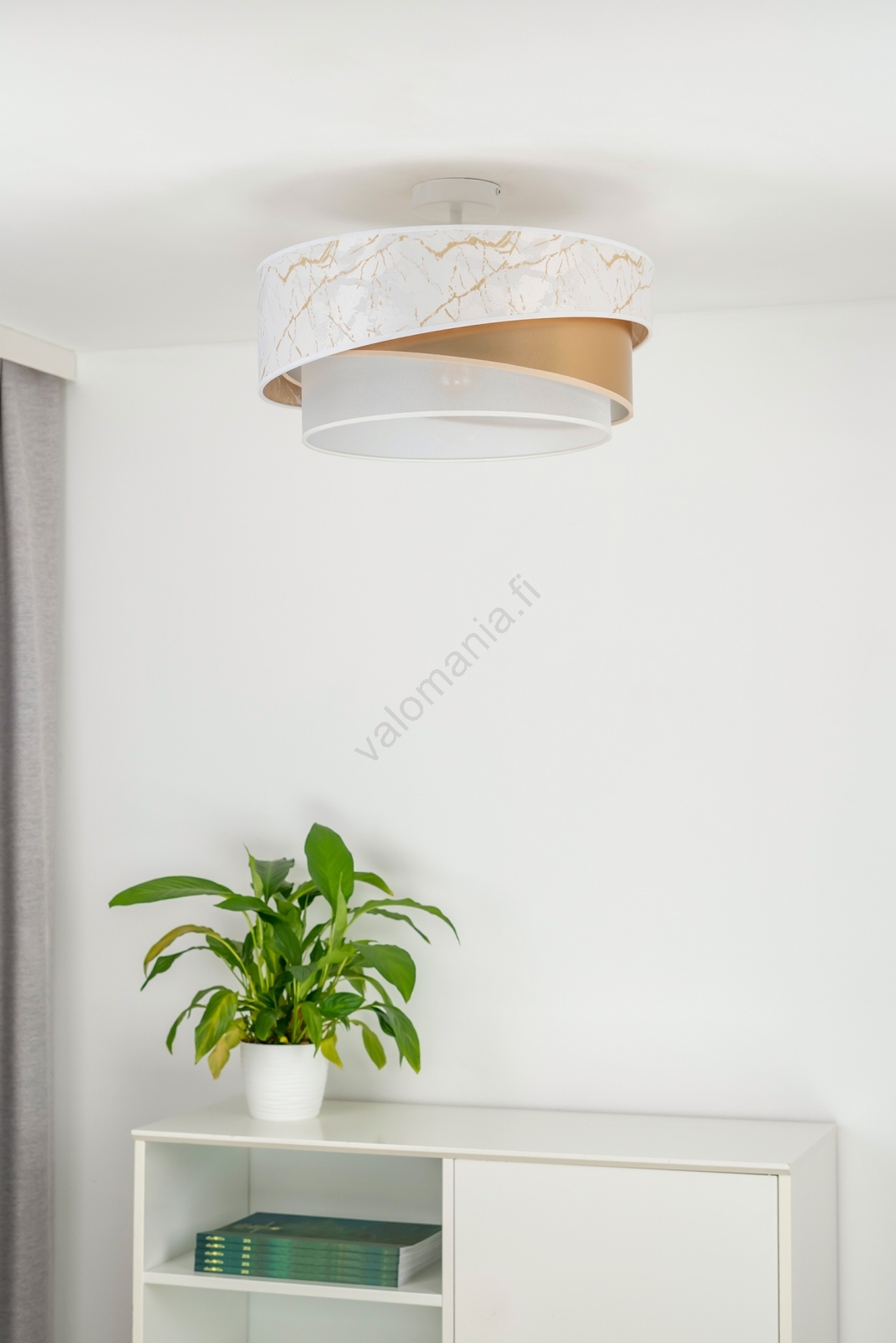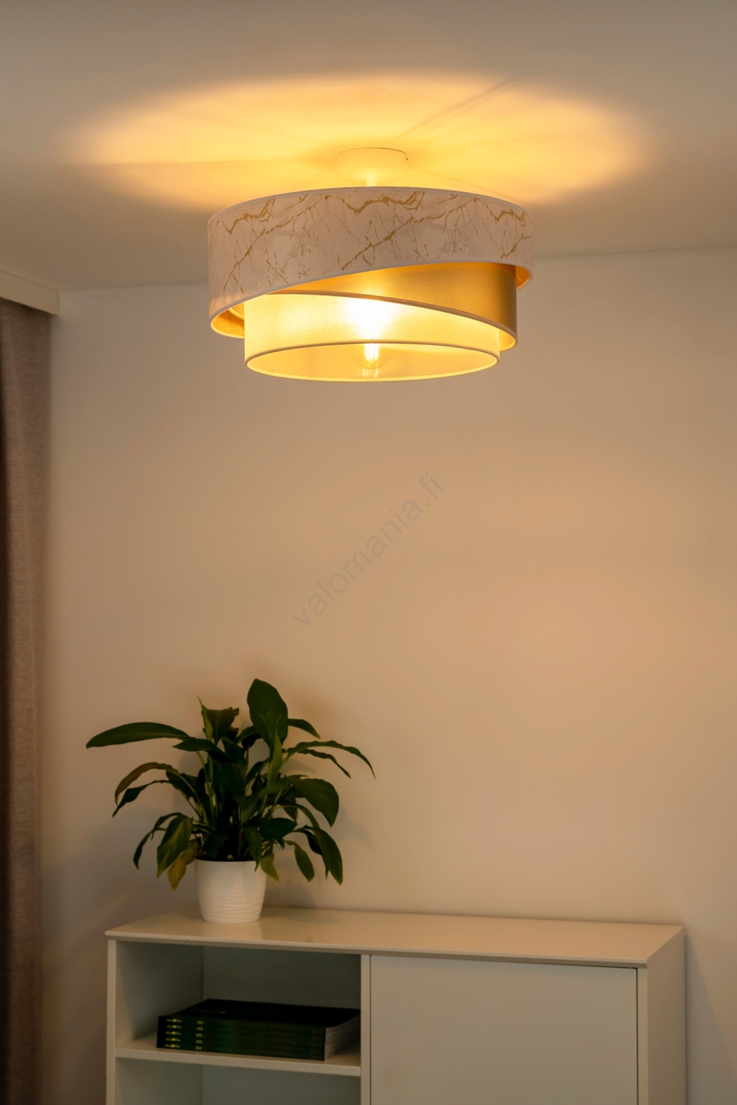 Duolla - Kiinteä kattokruunu KOBO 1xE27/15W/230V halkaisija 45 cm valkoinen/kulta merkitsee kaunista ja toimivaa muotoilua.  Valoon sopii polttimo, jossa on E27-kanta. Täältä voit ostaa myös muita lamppuja edulliseen hintaan. Mielenkiintoinen lisä kotiisi.