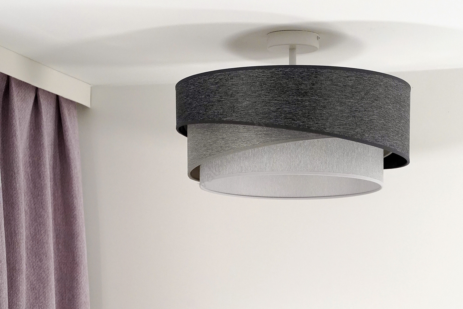 Duolla - Kiinteä kattokruunu KOBO 1xE27/15W/230V halkaisija 45 cm harmaa/valkoinen merkitsee kaunista ja toimivaa muotoilua.  Valoon sopii polttimo, jossa on E27-kanta. Täältä voit ostaa myös muita lamppuja edulliseen hintaan. Mielenkiintoinen lisä kotiisi.