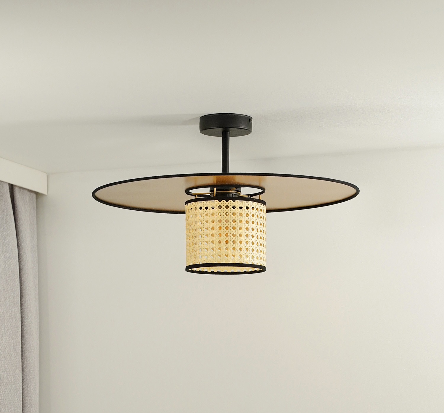 • Duolla - Kiinteä kattokruunu TOKYO RATTAN 1xE27/15W/230V halkaisija 50 cm kulta/musta