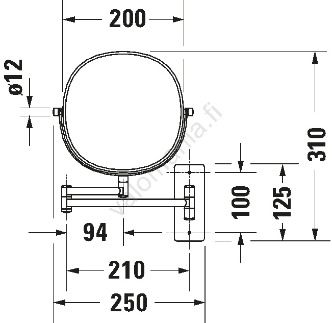 • Rakenne sisältää säädettävän varren, jonka ansiosta peiliä voi kääntää kätevästi tarpeen mukaan.