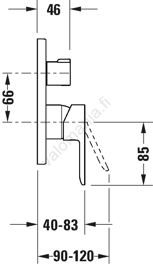 • Seinään upotettava yksikahvainen hana on tarkoitettu sekä ammeeseen että suihkuun ja mahdollistaa kahden veden ulostulon ohjauksen.