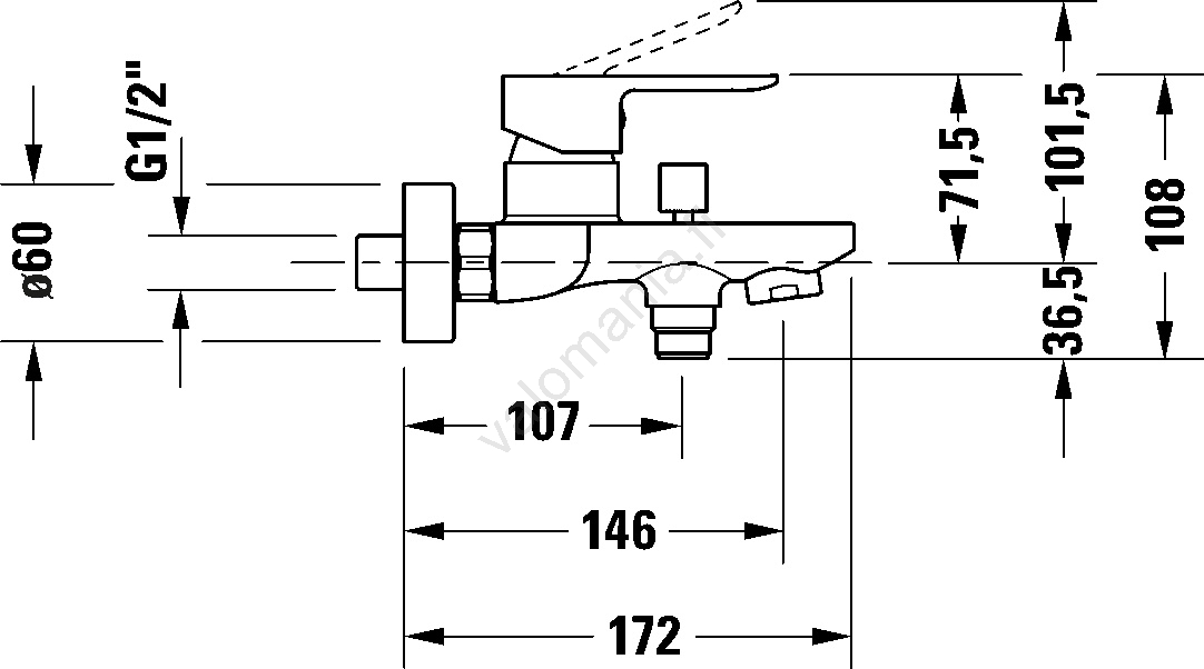 • Seinäasennettava yksikahvainen ammehana on tarkoitettu seinäasennukseen.