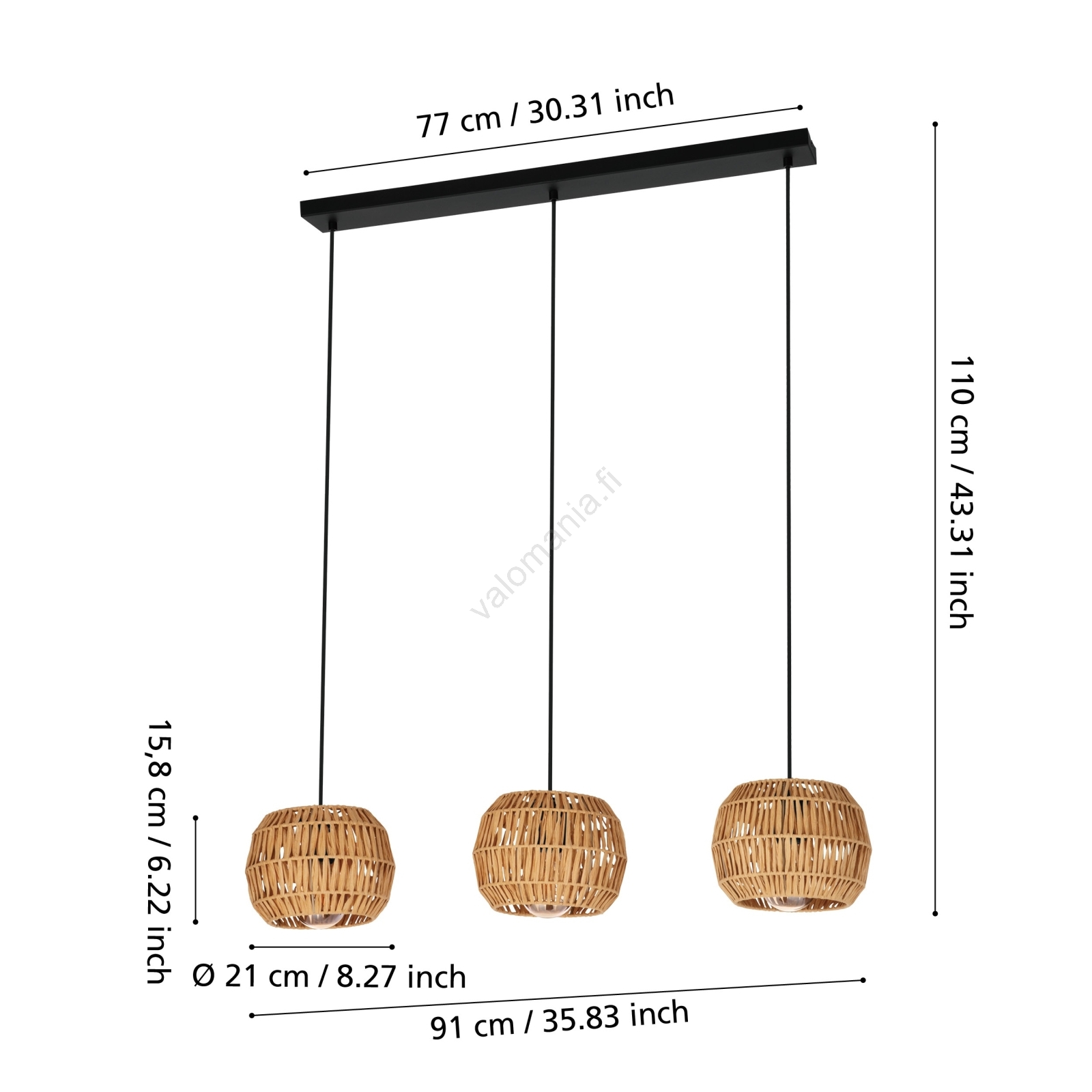 Eglo 44144 - Riippuvalaisin johdolla SHELDON 3xE27/40W/230V ruskea | Valomania