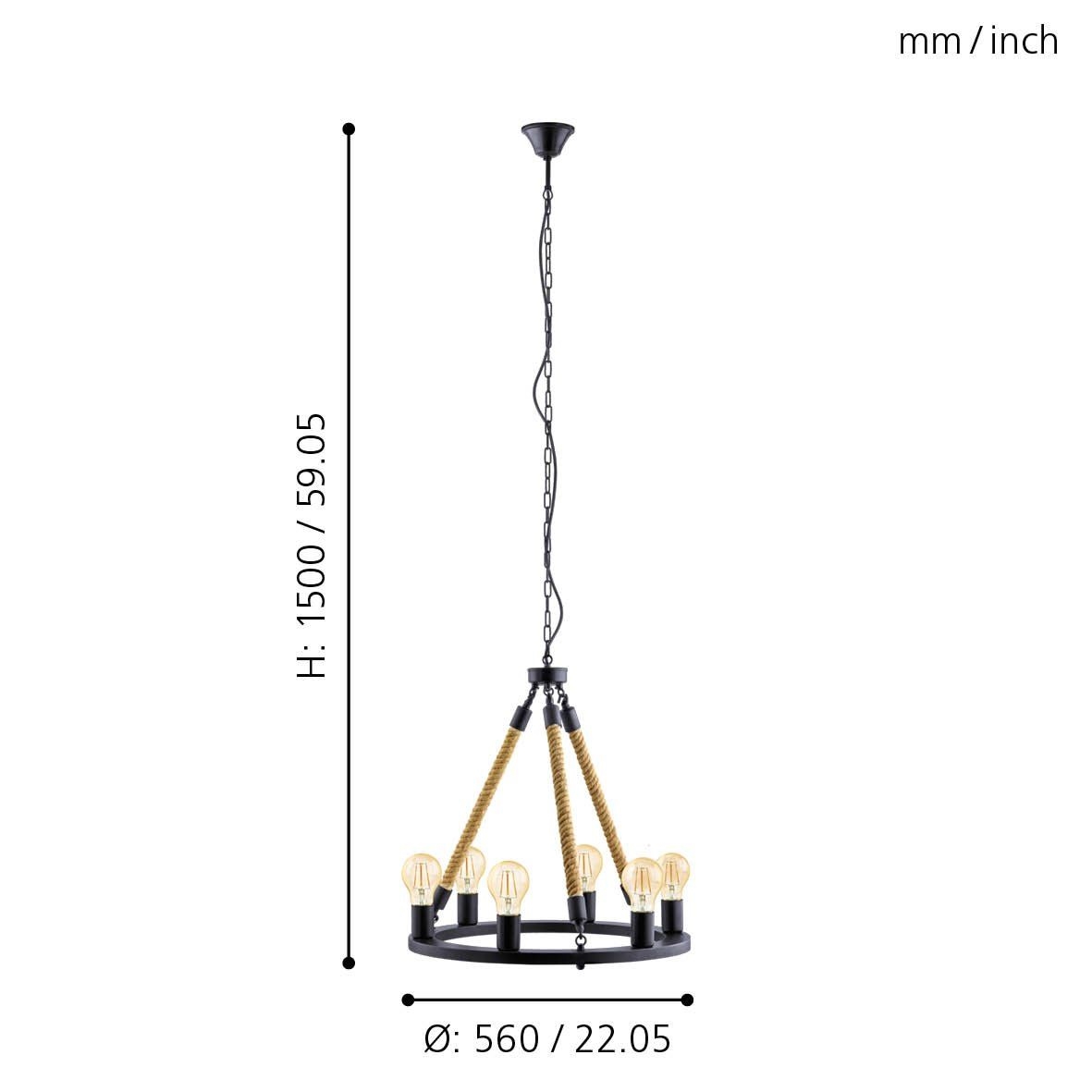Eglo 49694 - Ketjullinen riippuvalaisin FINDLAY 6xE27/60W | Valomania