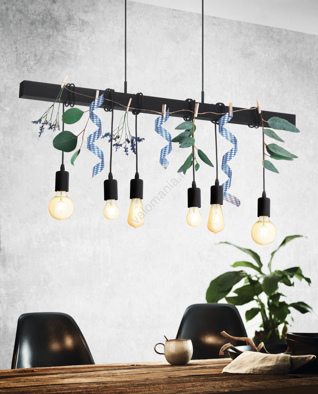 Eglo - Riipusvalaisin TOWNSHEND 6xE27/60W/230V merkitsee kaunista ja toimivaa muotoilua.  Valoon sopii polttimo, jossa on E27-kanta. Täältä voit ostaa myös muita lamppuja edulliseen hintaan. Mielenkiintoinen lisä kotiisi.