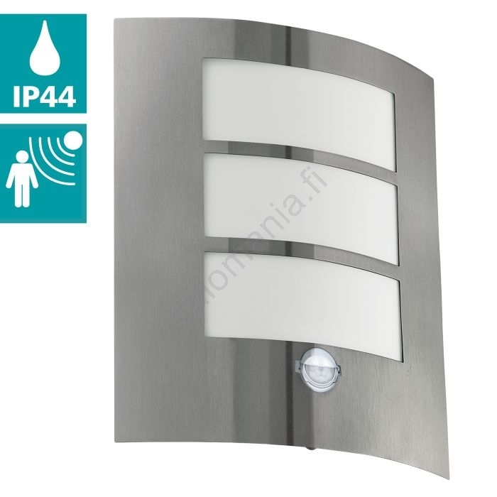 EGLO 88142 - Ulkoseinävalaisin anturilla CITY 1xE27/15W/230V IP44 merkitsee kaunista ja toimivaa muotoilua.  Valoon sopii polttimo, jossa on E27-kanta. Täältä voit ostaa myös muita lamppuja edulliseen hintaan. Mielenkiintoinen lisä kotiisi.